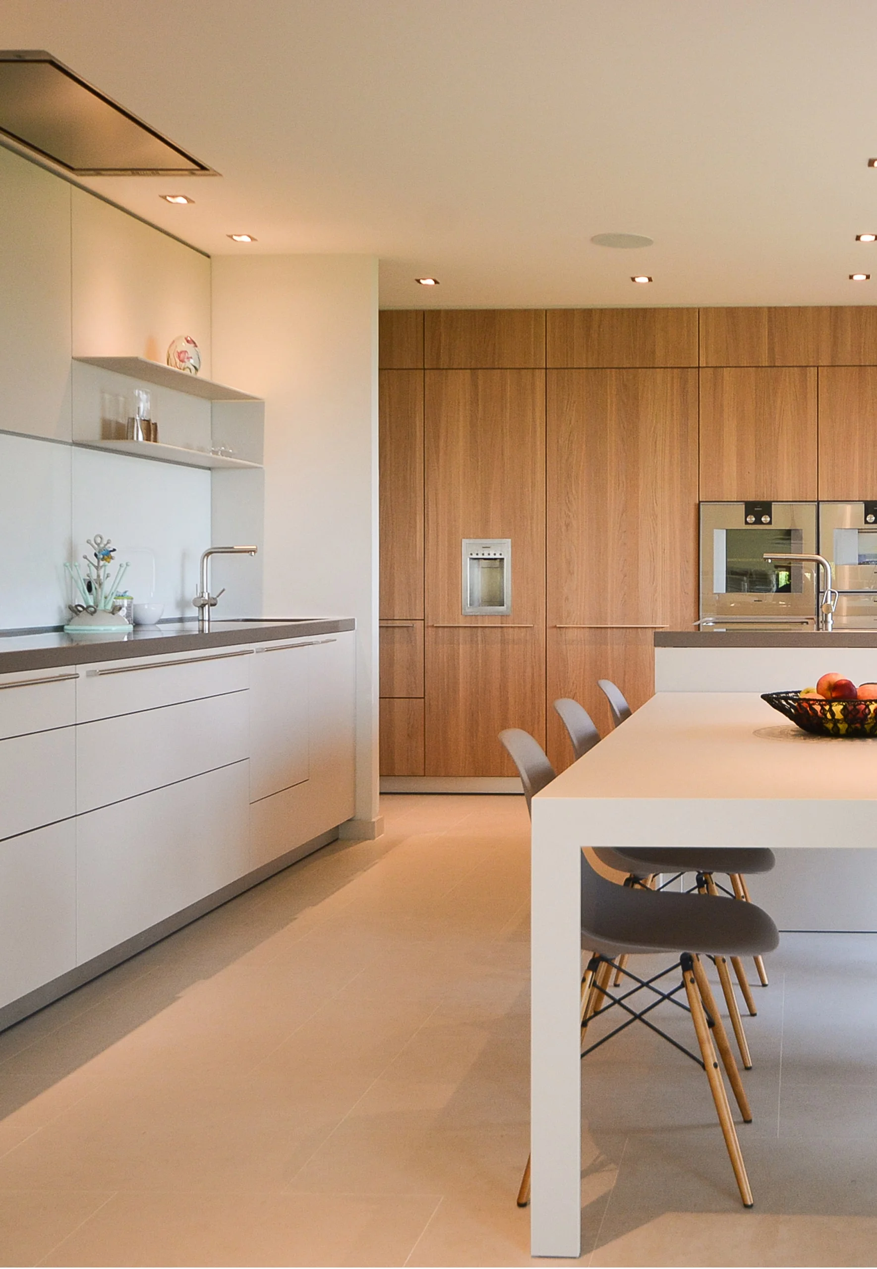 Salle à manger et cuisine moderne au style épuré aménagé par un architecte d'intérieur